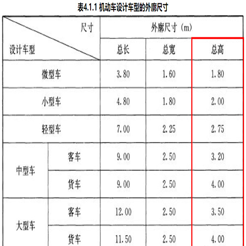 4.1.1 機動車庫應(yīng)根據(jù)停放車輛的設(shè)計車型外廓尺寸進行設(shè)計。機動車設(shè)計車型的外廓尺寸可按表4.1.1取值。